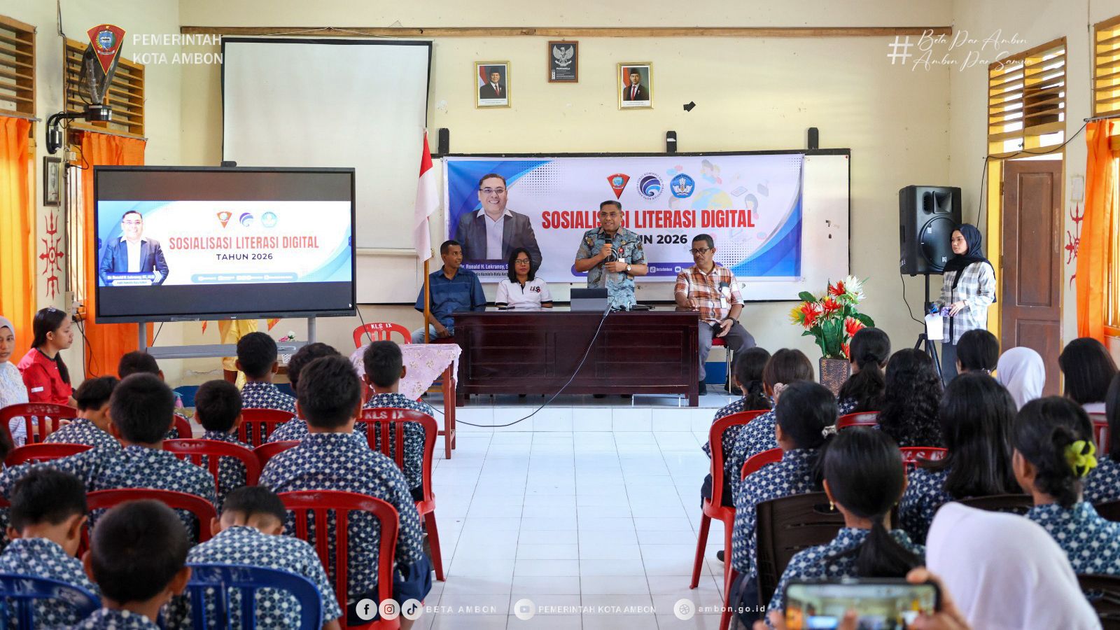 AMBON, PPID – Pemerintah Kota Ambon melalui Dinas Komunikasi, Informatika dan Persandian (Diskominfo) menggelar kegiatan Sosialisasi Literasi Digital bagi para siswa di SMP Negeri 6 Ambon, Jumat (13/2/26).