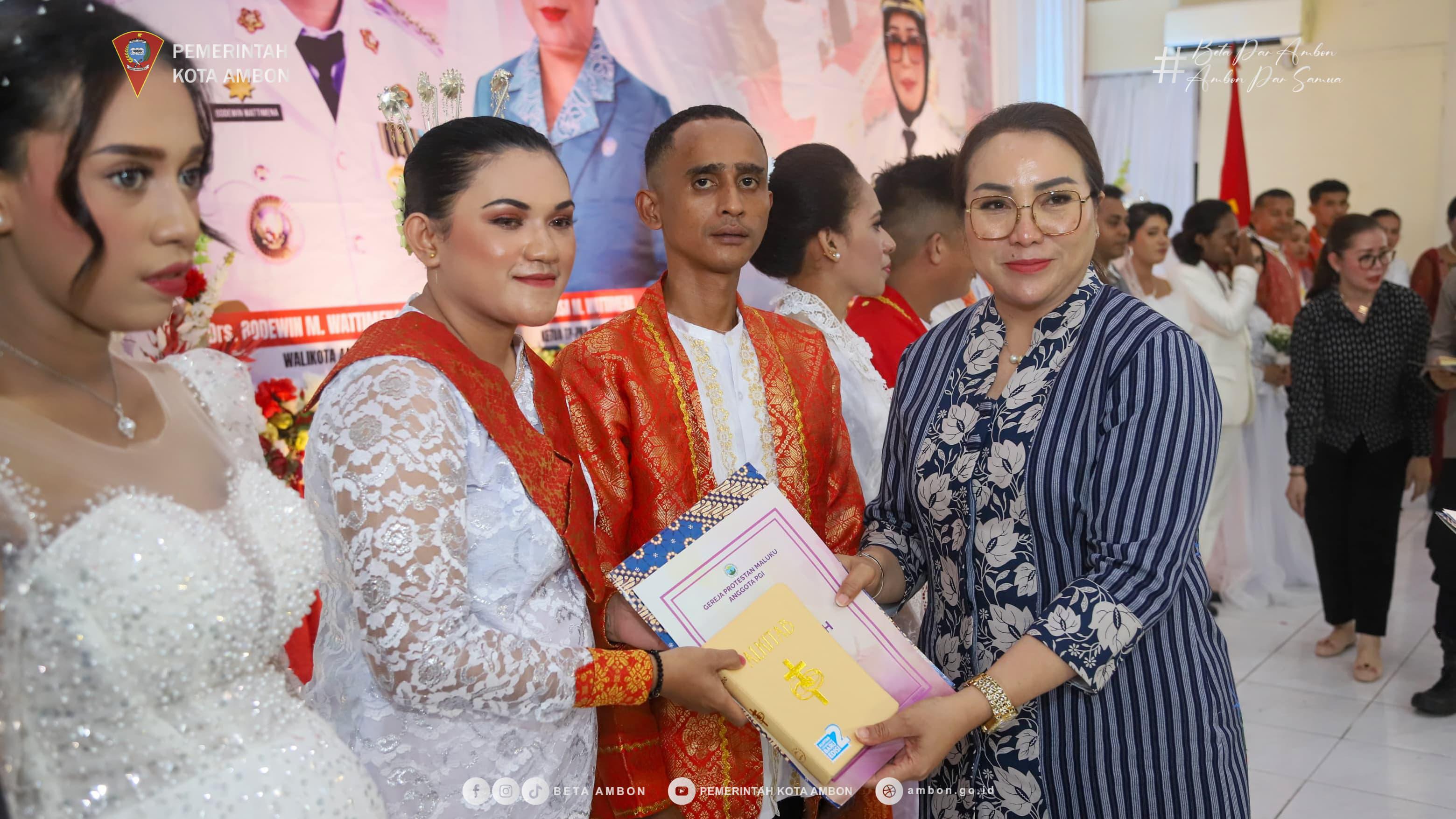 AMBON,PPID – Sebanyak 100 pasangan beragama Kristen mengikuti kegiatan Pelayanan Terpadu Kepemilikan Status Hukum Perkawinan (Nikah Massal) yang dilaksanakan Pemerintah Kota (Pemkot) Ambon, Jumat (29/8/25) di Aula Xaverius.