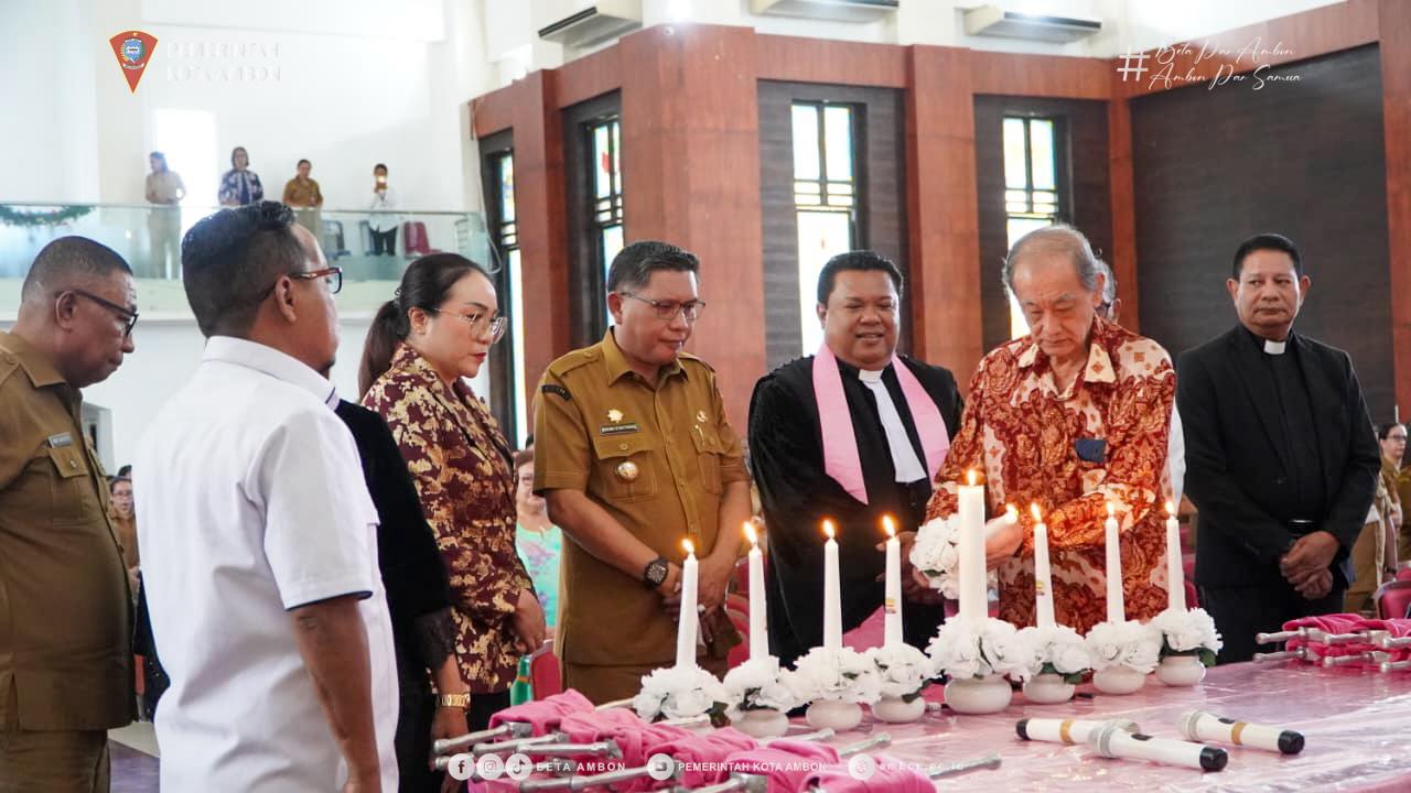 AMBON, PPID– Pemerintah Kota (Pemkot) Ambon, menggelar perayaan Natal yang diikuti oleh seluruh ASN. Ibadah ini dilaksnakan pada, Gereja Maranatha Ambon, Selasa (16/12/25).