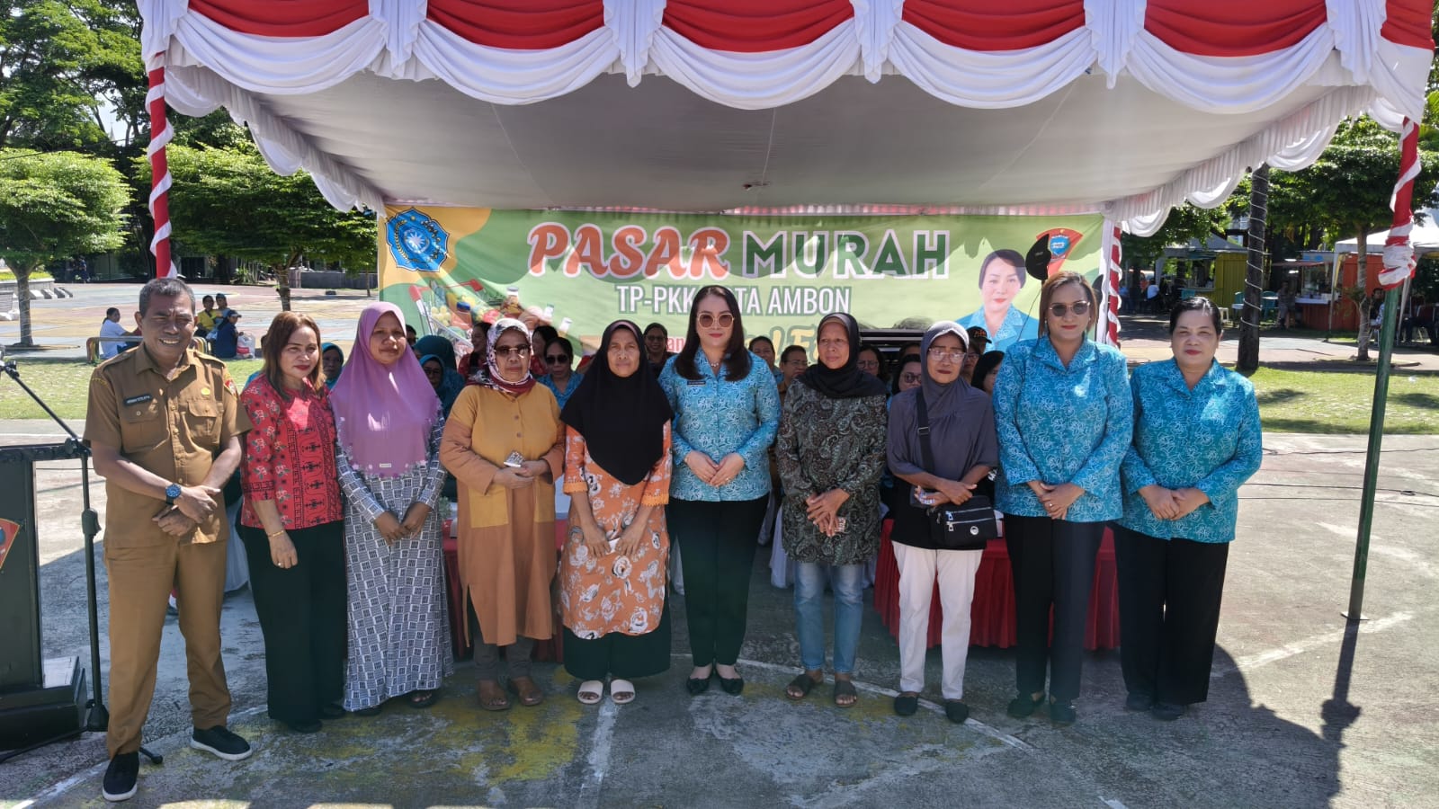 AMBON, PPID-Gandeng Pemerintah Kota (Pemkot) Ambon, Tim Penggerak Pemberdayaan dan Kesejahtaraan Keluarga (TP-PKK) menggelar “Pasar Murah Menjelang Hari Raya Idulfitri 1447 Hijiriah” di Pattimura Park, Senin (16/3/26).