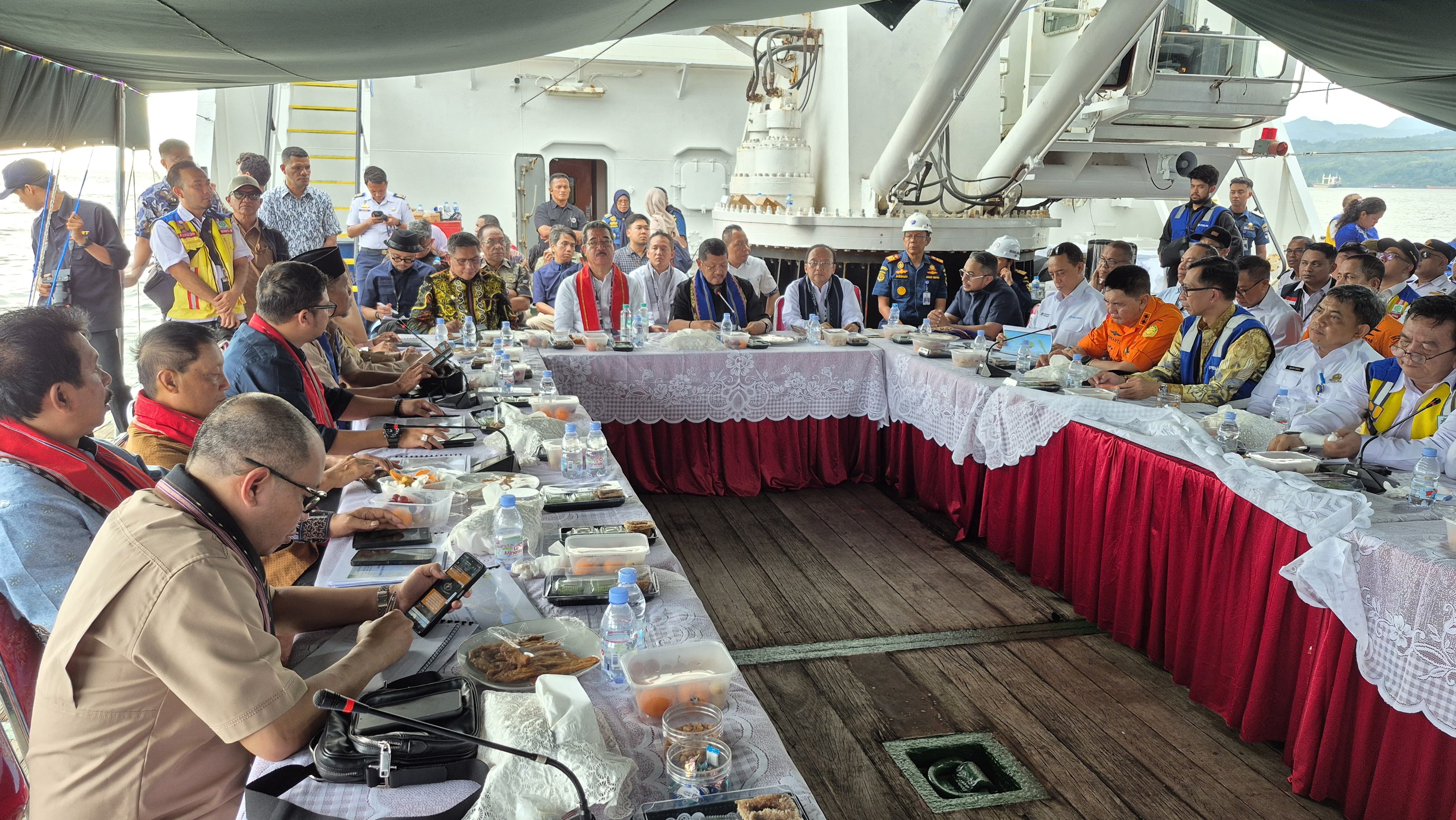 Perjalanan laut tersebut berakhir di Pelabuhan Yos Sudarso Ambon, di mana rombongan melanjutkan agenda peninjauan terhadap fasilitas pelabuhan dan infrastruktur pendukung lainnya.