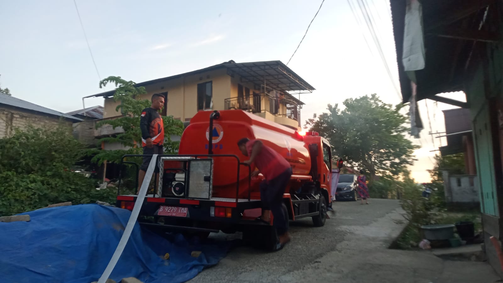 Kepala Pelaksana (Kalak) BPBD Kota Ambon, Frits Tatipikalawan, turun langsung ke lokasi bersama empat staf untuk memastikan distribusi air bersih berjalan lancar dan tepat sasaran.