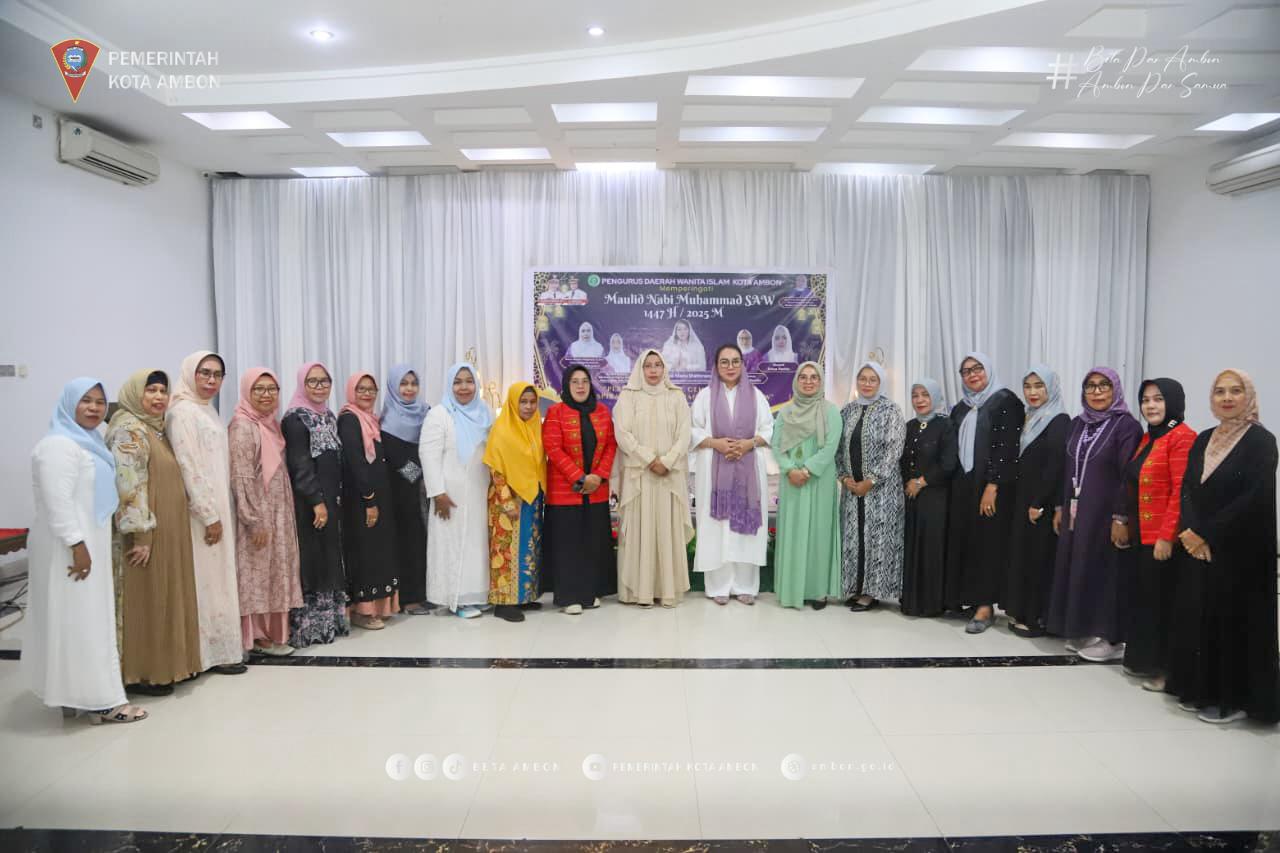 AMBON,PPID – Pemerintah Kota (Pemkot) Ambon bersama Pengurus Daerah Wanita Islam Kota Ambon menggelar peringatan Maulid Nabi Muhammad SAW 1447 H/2025 M, dengan tema “Perempuan Hebat, Generasi Kuat: Inspirasi dari Kehidupan Rasulullah SAW” di Hotel Marina Ambon, Sabtu (4/10/25). Kegiatan ini turut dihadiri oleh Ketua Tim Penggerak (TP) PKK Kota Ambon, Lisa Wattimena.