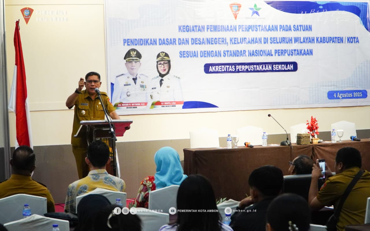 Dalam sambutannya pada kegiatan Bimbingan Teknis Akreditasi Perpustakaan Sekolah, Desa, dan Kelurahan yang diadakan pada, Senin (4/8/25) di Manise Hotel, Wali Kota Ambon, Bodewin M. Wattimena menegaskan pentingnya pengelolaan perpustakaan yang sesuai dengan Standar Nasional Perpustakaan (SNP).