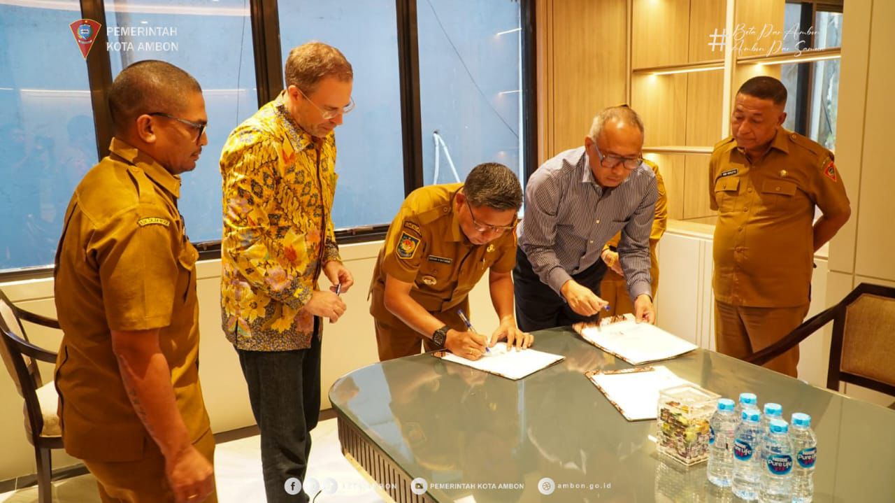 Penandatanganan berlangsung di ruang kerja Wali Kota, Balai Kota Ambon, Selasa (9/9/2025).