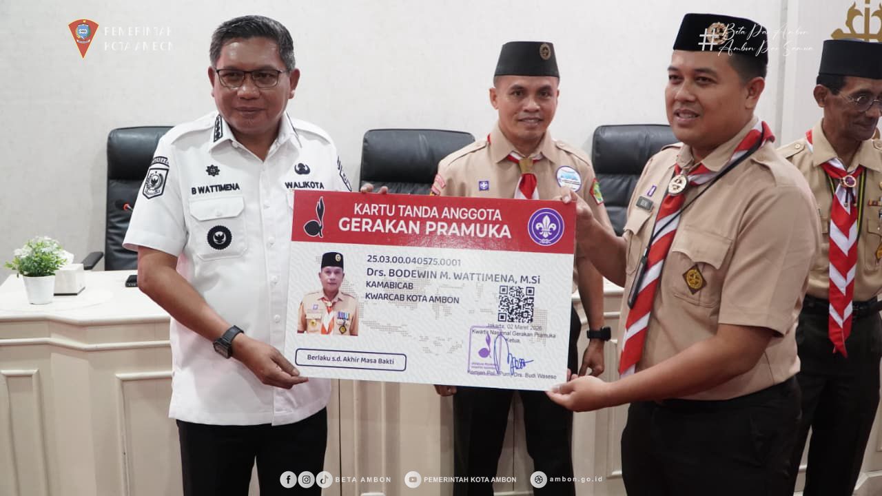 AMBON,PPID – Wali Kota sekaligus Ketua Majelis Pembimbing Cabang (Mabicab) Gerakan Pramuka Kota Ambon, Bodewin M. Wattimena, secara resmi membuka kegiatan Sosialisasi Pendataan Potensi Kartu Tanda Anggota (KTA) Pramuka Nasional dan Bimbingan Teknis (Bimtek) Aplikasi “Ayo Pramuka” Kwarnas, di Ruang Vlissingen, Balai Kota Ambon, Rabu (4/3/26)