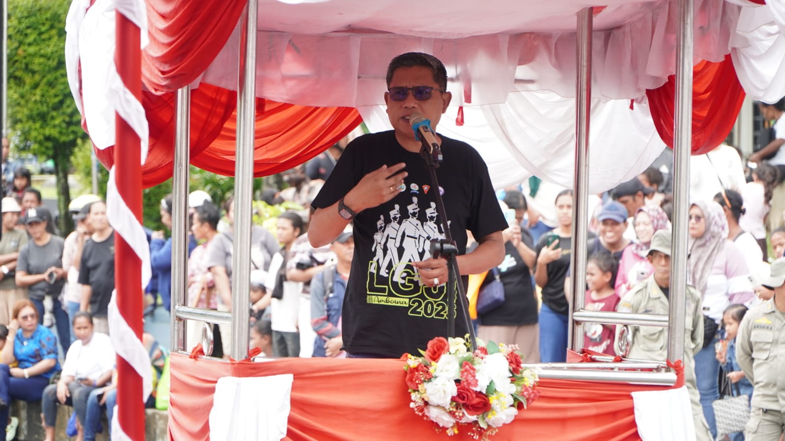 Dalam sambutan, Ia menyampaikan apresiasi dan dukungan penuh Pemerintah Kota Ambon terhadap kegiatan ini, dan menekankan pentingnya kegiatan gerak jalan indah sebagai ajang yang tidak hanya memupuk semangat kebersamaan, tetapi juga mendukung pengembangan pariwisata kota.