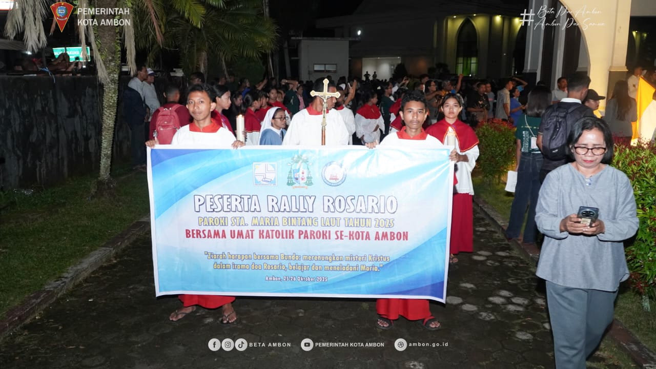 AMBON, PPID – Wali Kota Ambon, Bodewin M. Wattimena memberi apresiasi terhadap Rally Rosario Tahun 2025 yang dilaksanakan paroki Santa Maria Bintang Laut dan diikuti umat Katolik dari Paroki lainnya se – kota Ambon, 25 – 26 Oktober 2025.