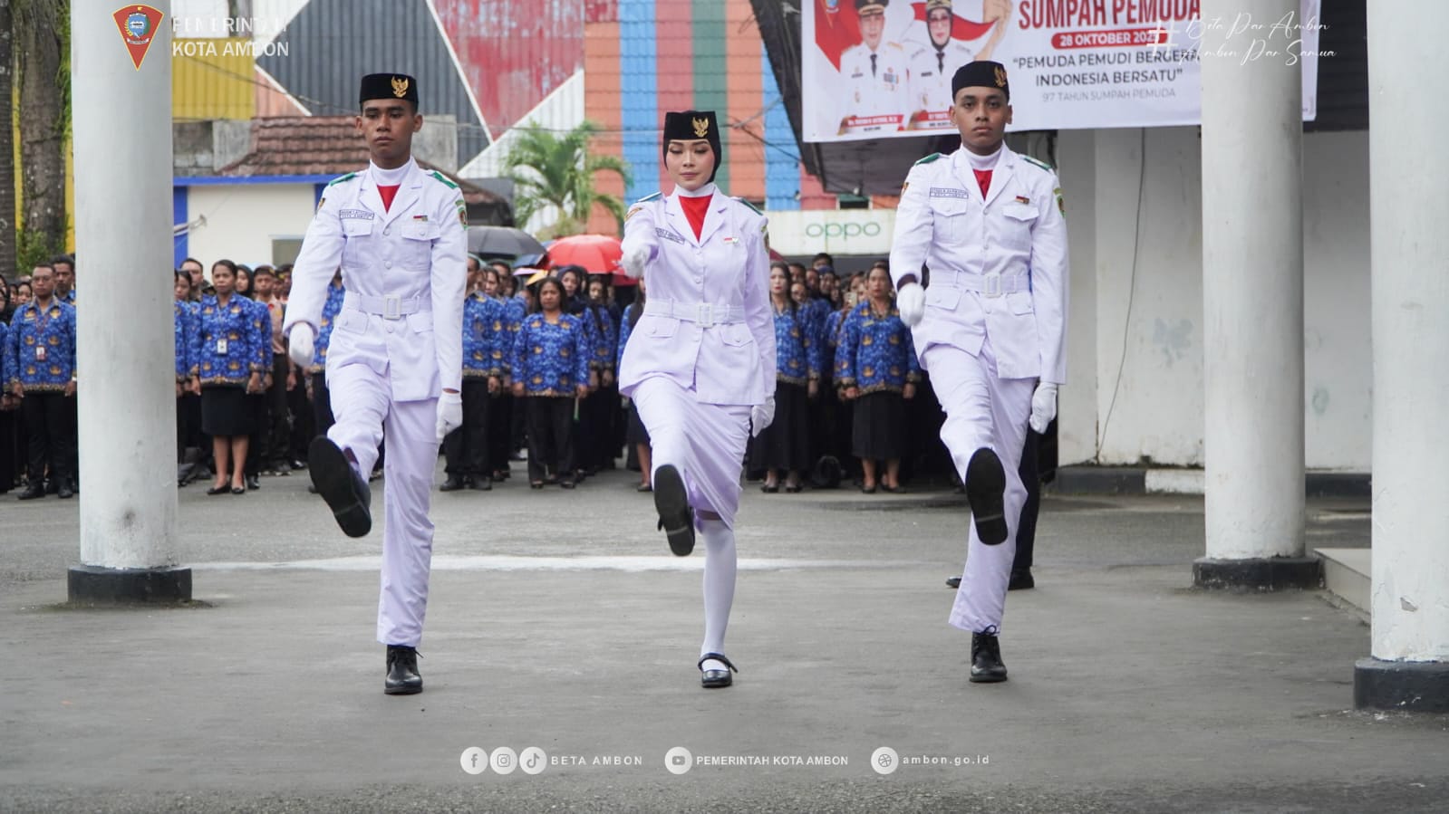 AMBON, PPID– Wali Kota Ambon, Bodewin M. Wattimena memimpin upacara peringatan Hari Sumpah Pemuda Ke-97 Tahun 2025, yang dihadiri oleh seluruh ASN lingkup pemerintah kota (Pemkot) serta perwakilan siswa SMA /SMK se -kota Ambon, Senin (28/10/25) di Balai Kota.